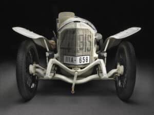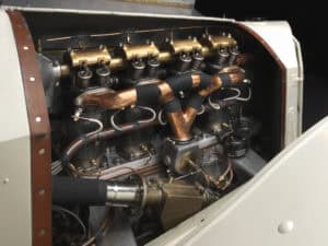 Mercedes’s competition cars continued to be a force in the world. The second-place chassis was sold to Ralph De Palma, who drove it to a win at the 1915 Indianapolis 500. Another Grand Prix chassis made its way to London for display; shortly thereafter, Britain declared war on Germany, and W.O. Bentley used the opportunity to have the car seized and taken apart at the Rolls-Royce factory. “It is common knowledge,” recounted Bentley, “that all Rolls-Royce aero engines built during World War I were based quite closely on this engine.”